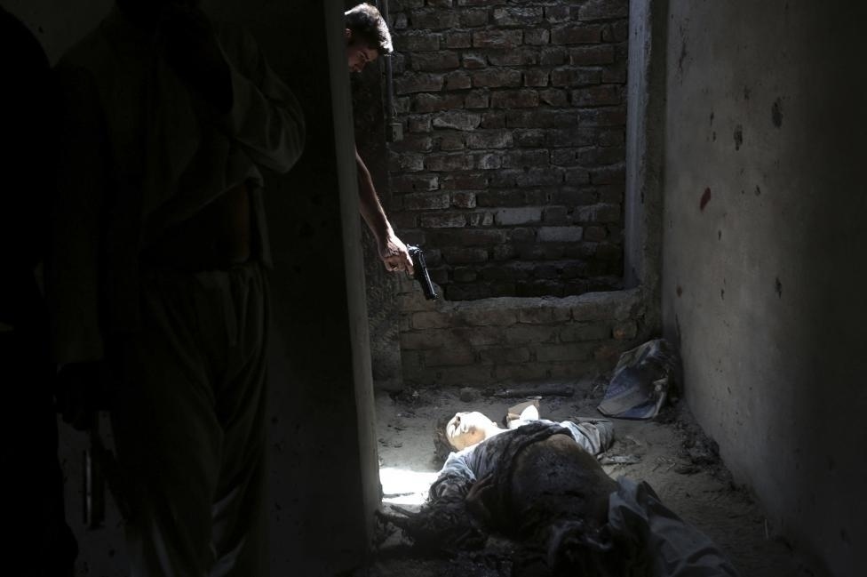 Афганы оршин суугч үл таних цэргийн цогцос руу буугаа тулгаж байгаа нь бослого, тэмцлийг ямар ихээр үзэн ядаж байгааг нь харуулжээ. Энэхүү зургийг Кабулд болсон агаарын цохилтын дараа авчээ. 2014.07.14