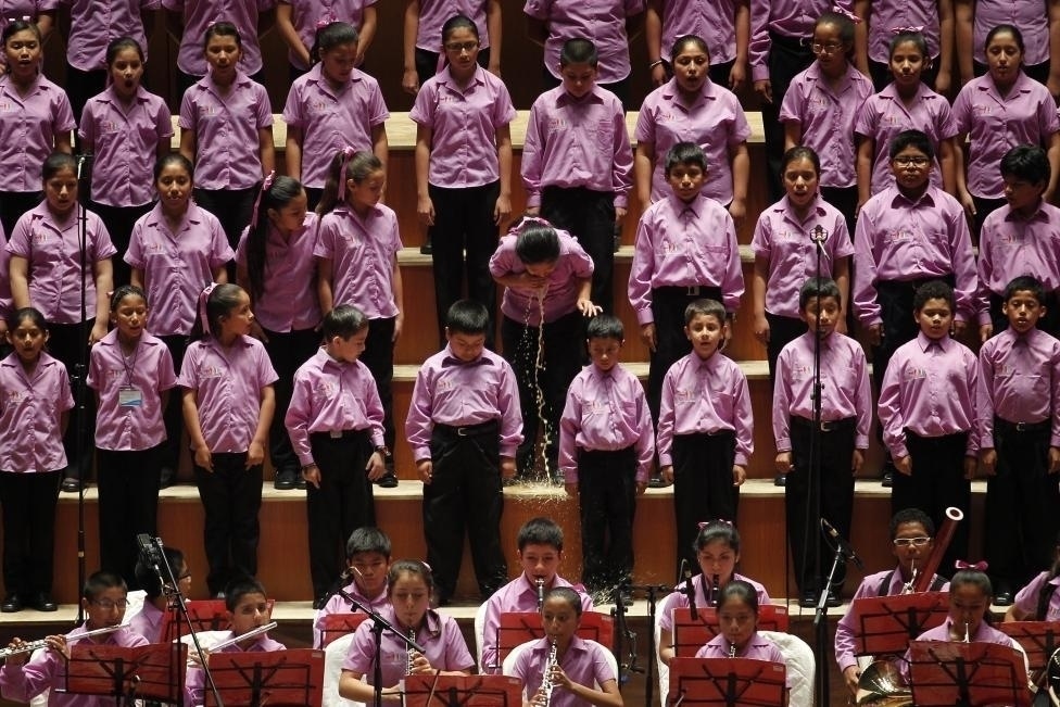 "Sinfonia por el Peru" найрал дууны хамтлагийн нэгэн гишүүн тоглолт эхлэхийн өмнө бөөлжжээ. Лимагийн Үндэсний Театрт. 2014.05.13