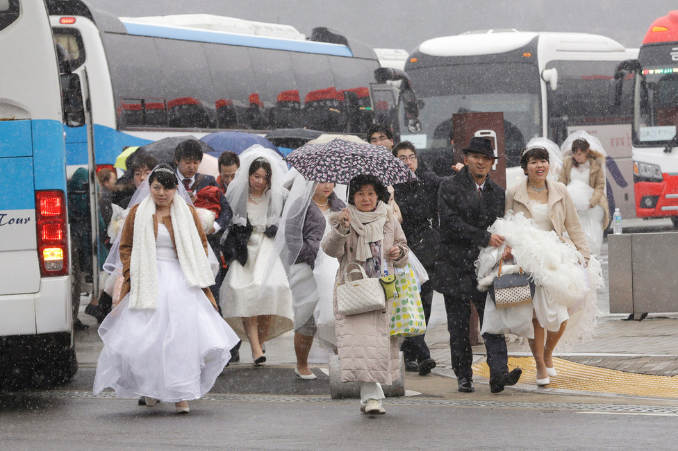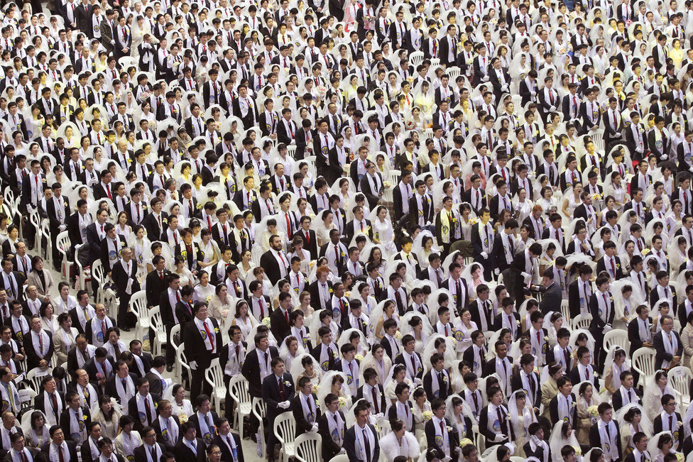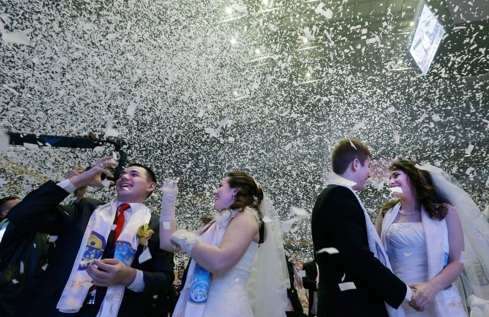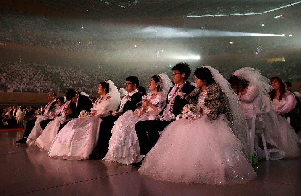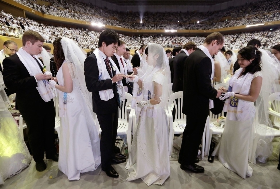 Дэлхийн 50 гаруй орны 7,000 гаруй Mүүний шашинтай иргэн Өмнөд Солонгос улсын Га пёнгд байрлах Эв нэгдлийн сүм хэмээн алдаршсан газар өчигдөр гэрлэжээ.
