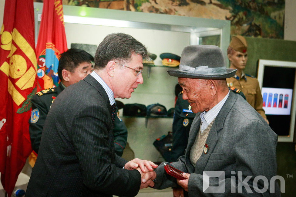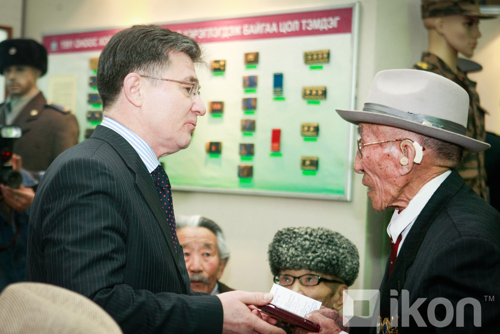 Монгол цэргийн музейд цугласан ахмад дайчдад ойн медаль гардуулж буй ОХУ-аас Монгол Улсад суугаа Элчин сайд Азизов Искандер Кубарович ахмад дайчин бүрт талархаж буйгаа илэрхийлээд урт удаан наслахыг ерөөсөн юм. Мөн “Бид энэ тэмдэглэлт үйл явдлыг цаашид ч хамтдаа хуваалцсаар байх болно. Биднийг илүү шинэ харилцаа, бат найрамдал, шинэ ирээдүй угтах болно гэдэгт найдаж байна” гэлээ.