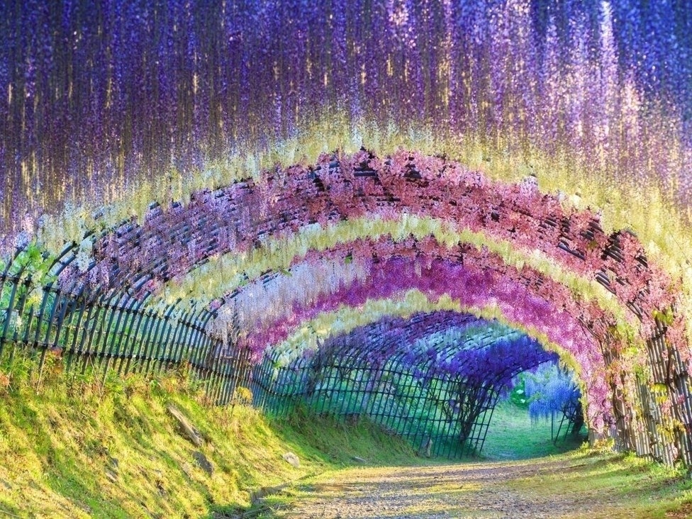 Китакюшү дэх Карачи Фүжү цэцэрлэгт 20 гаруй төрлийн 150 гаруй ороонгон ургамал бий. Энд та гайхамшигт цэцгэн тунелийн доогуур алхах боломжой.