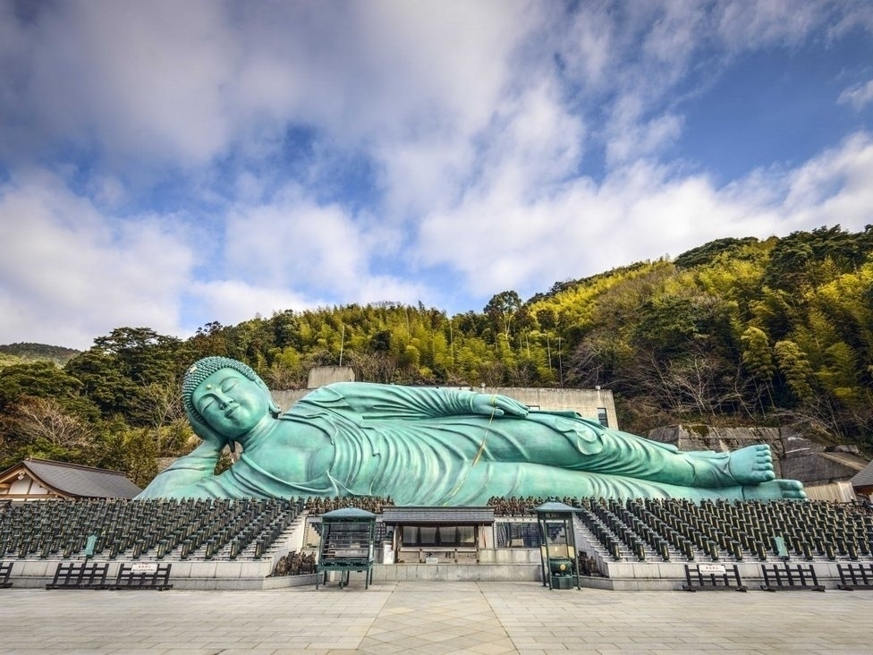 Фукуокад байрлах Нанкин сүмийн Буддагийн хөшөө. Дэлхийн хамгийн том Буддагийн хөшөөний нэгд тооцогддог бөгөөд 41 метрийн урттай.