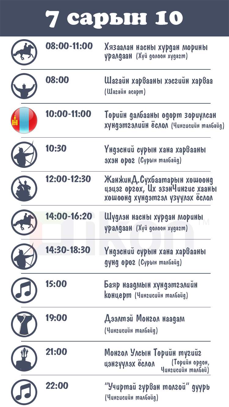 ИНФОГРАФИК: Үндэсний их баяр наадмын хөтөлбөр
