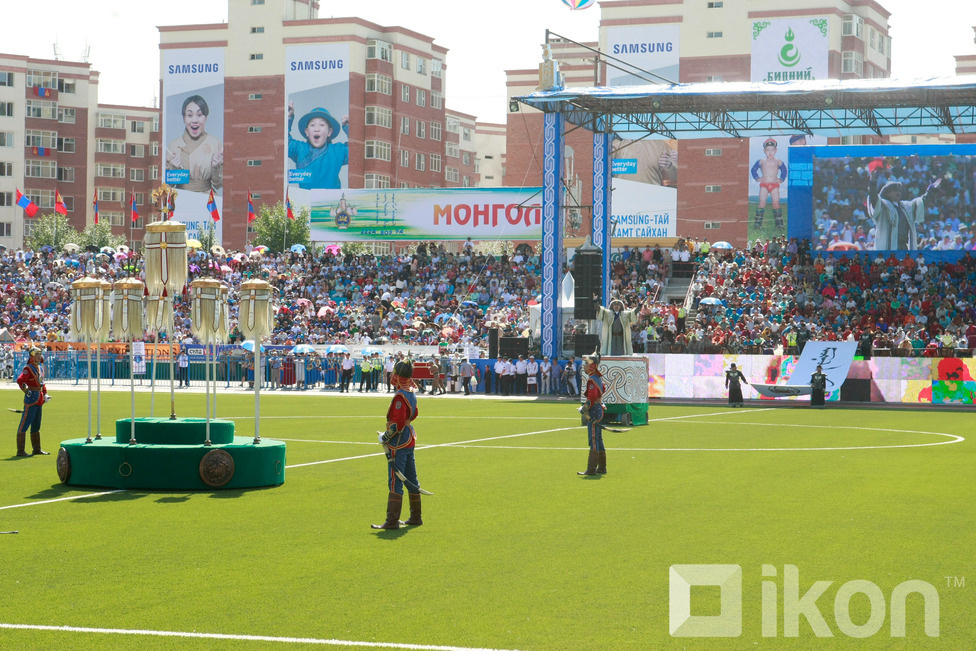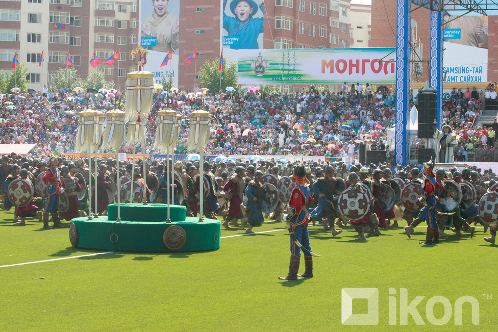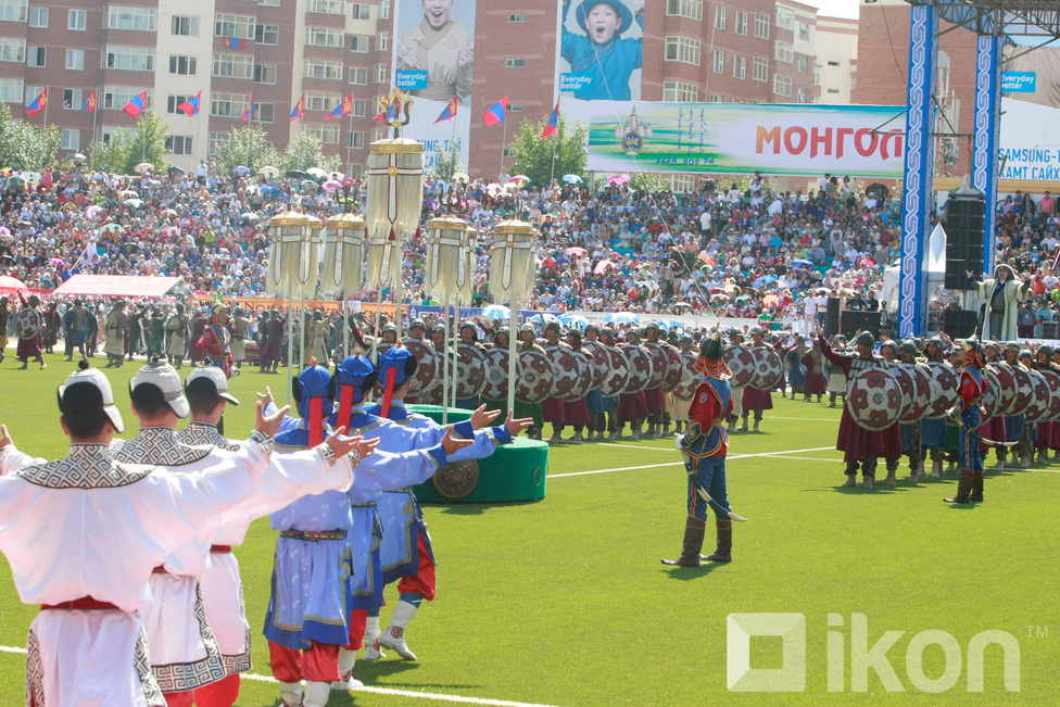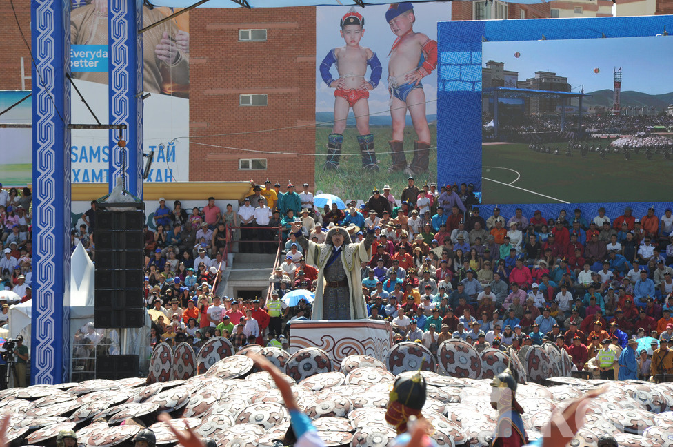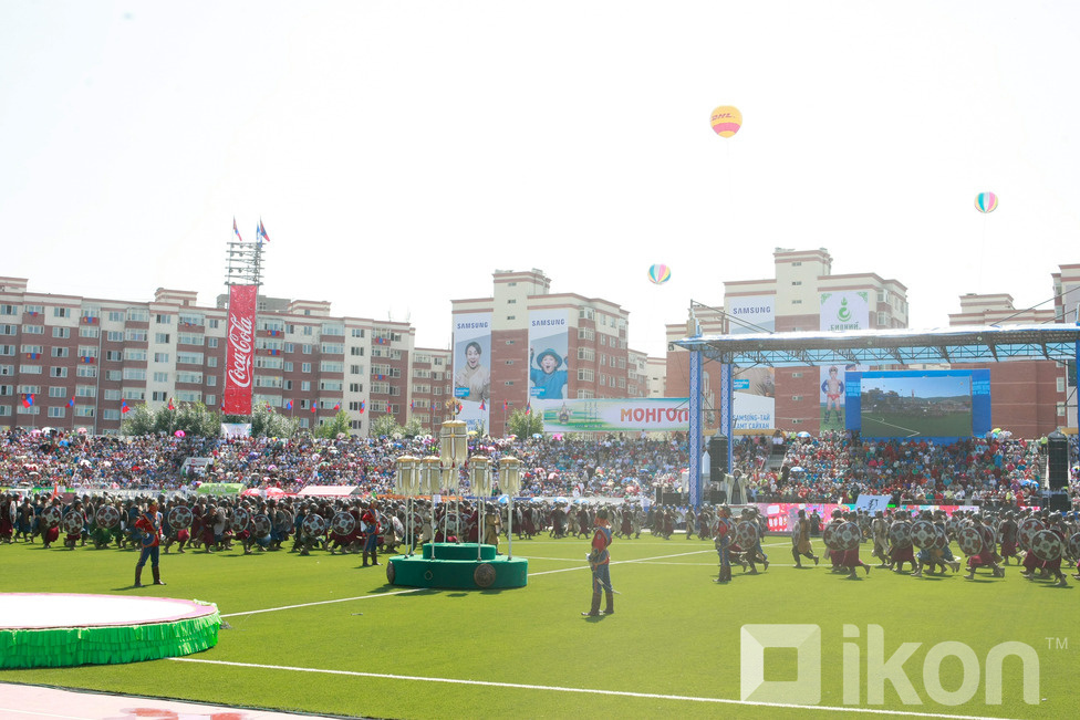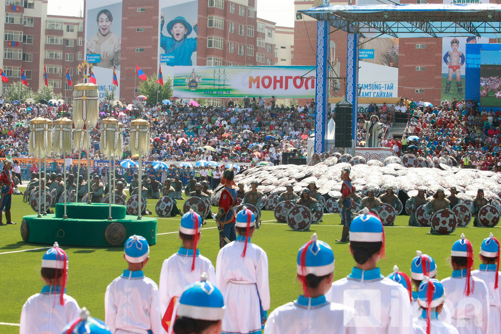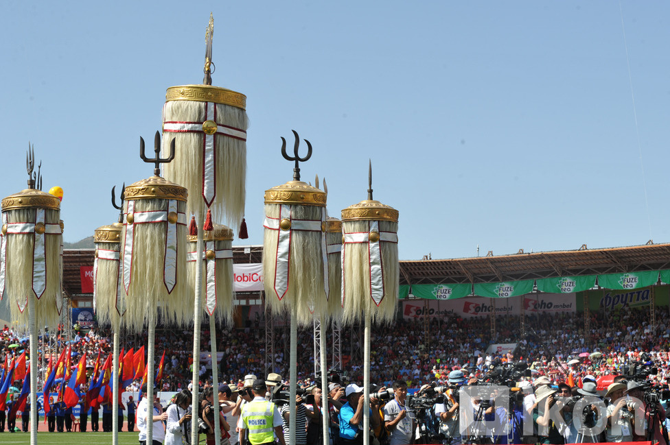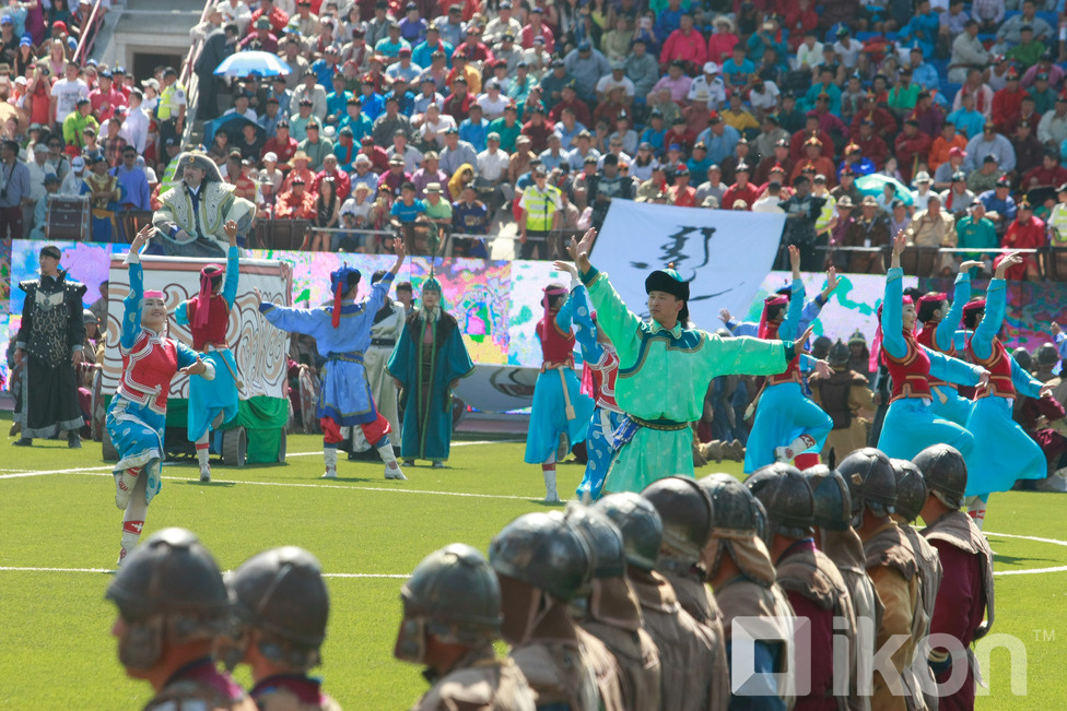 Тулгар төрийн 2224, Их Монгол улсын 809, Ардын хувьсгалын 94 жилийн ойн баяр наадмын нээлт Төв цэнгэлдэх хүрээлэнд боллоо. Төрийн их сүлд Есөн хөлт цагаан тугийг цэнгэлдэх хүрээлэнд залах ёслолын ажиллагааны дараа наадмын нээлтийн урлагийн үзүүлбэр болов. Монгол түмэн наадмын ёслол хүндэтгэлийн гол үйл ажиллагааг үзэхээр хуран цуглажээ.
