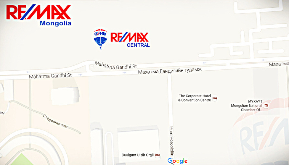 Та RE/MAX Central брокер/оффистой холбогдож олон улсад нийцсэн үл хөдлөх хөрөнгө зуучлалын хамгийн шилдэг, найдвартай үйлчилгээ авахыг хүсч байвал, доорх хаягаар холбогдоно уу.