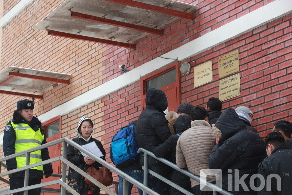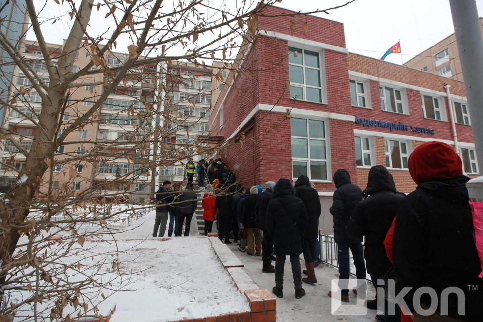 Одоогийн байдлаар . Бүртгүүлэх хүсэлтэй иргэд тус хорооны гадаа урт дараалал үүсгэсэн байв.