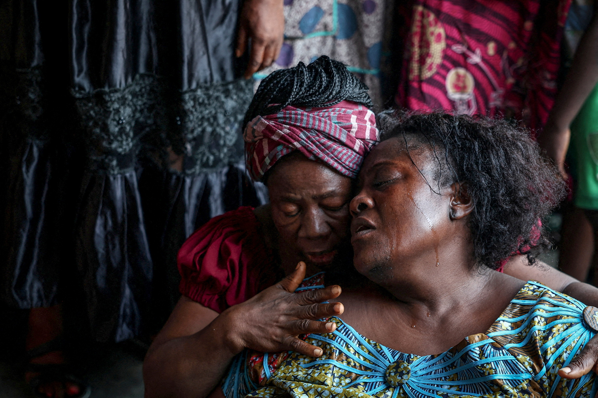 Ерөнхийлөгч Пол Бия сонгуульд ялсныг сөрөг хүчин эсэргүүцсэн жагсаалын үеэр аюулгүй байдлын хүчнийхэнд алагдсан нөхөр Ахилле Симо Фокамынхаа араас 40 настай Элоди Фоге Матуэкам гашуудаж байна. 2025 оны 10-р сарын 29. REUTERS/Zohra Bensemra