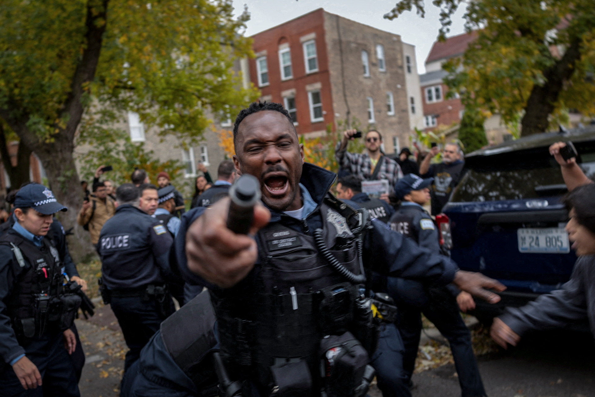 Холбооны хууль сахиулах байгууллагынхан Литл Виллеж орчимд цагаачлалын шалгалт явуулсны дараа оршин суугчидтай маргалдсан нэгэн эрийг саатуулах үеэр Чикагогийн цагдаагийн ажилтан, 2025 оны 11-р сарын 8. REUTERS/Carlos Barria