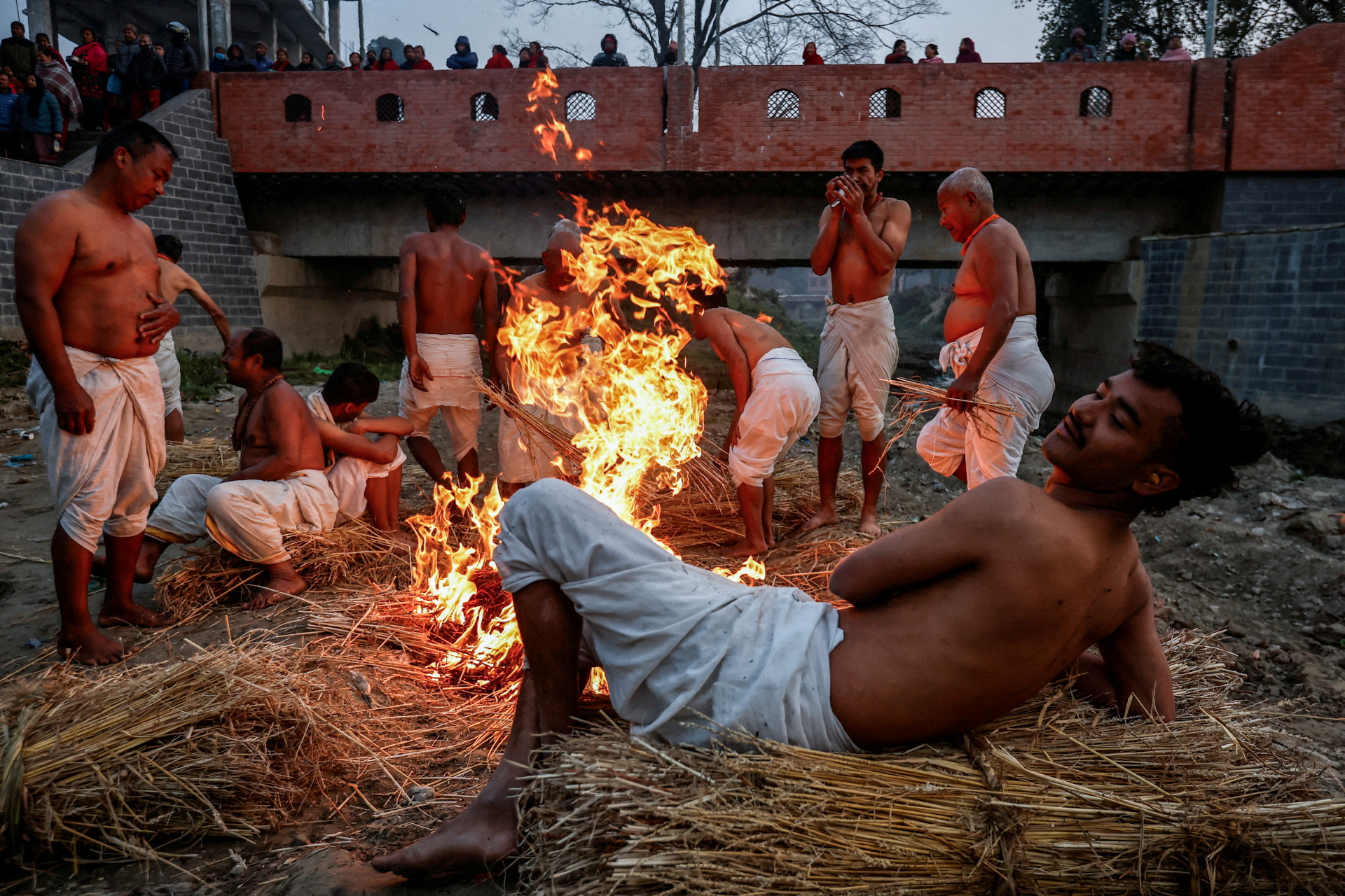 Свастани Брата Катха хэмээх сарын турш үргэлжилдэг баяр наадмын сүүлчийн өдөр сүсэгтэн олон Хануманте голын ариун усанд орохоосоо өмнө түүдэг галын дэргэд цугларчээ. 2025 оны 2 сарын 12. REUTERS/Navesh Chitrakar