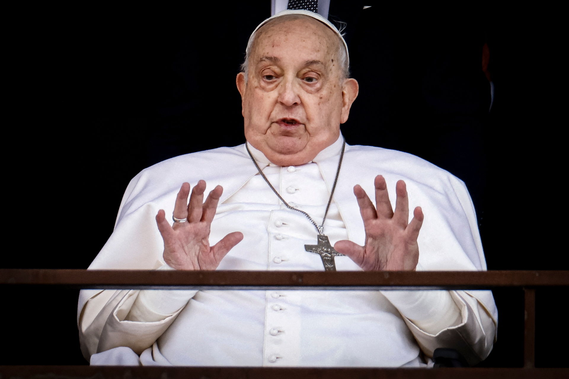 Ромын Пап Францис Жемелли эмнэлгээс гарах өдрөө олон нийтийм өмнө гарч буй агшин. Тэрээр таван долоо хоногийн турш олны өмнө гараагүй байв. 2025 оны 3 сарын 23. REUTERS/Yara Nardi
