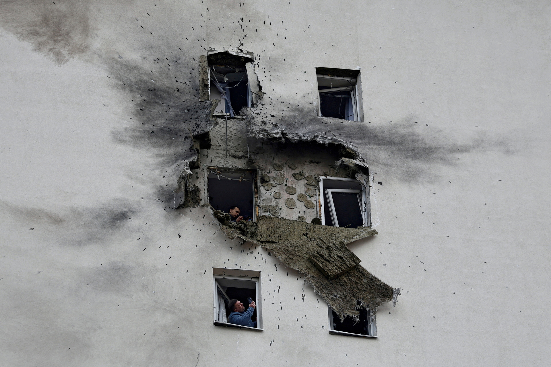 Украины дроны дайралтад өртөж гэмтсэн гэж орон нутгийн эрх баригчдын мэдээлж буй олон давхар орон сууцны барилга. Москва мужийн Видное хот, Орос. 2025 оны 3 сарын 11. REUTERS/Stringer