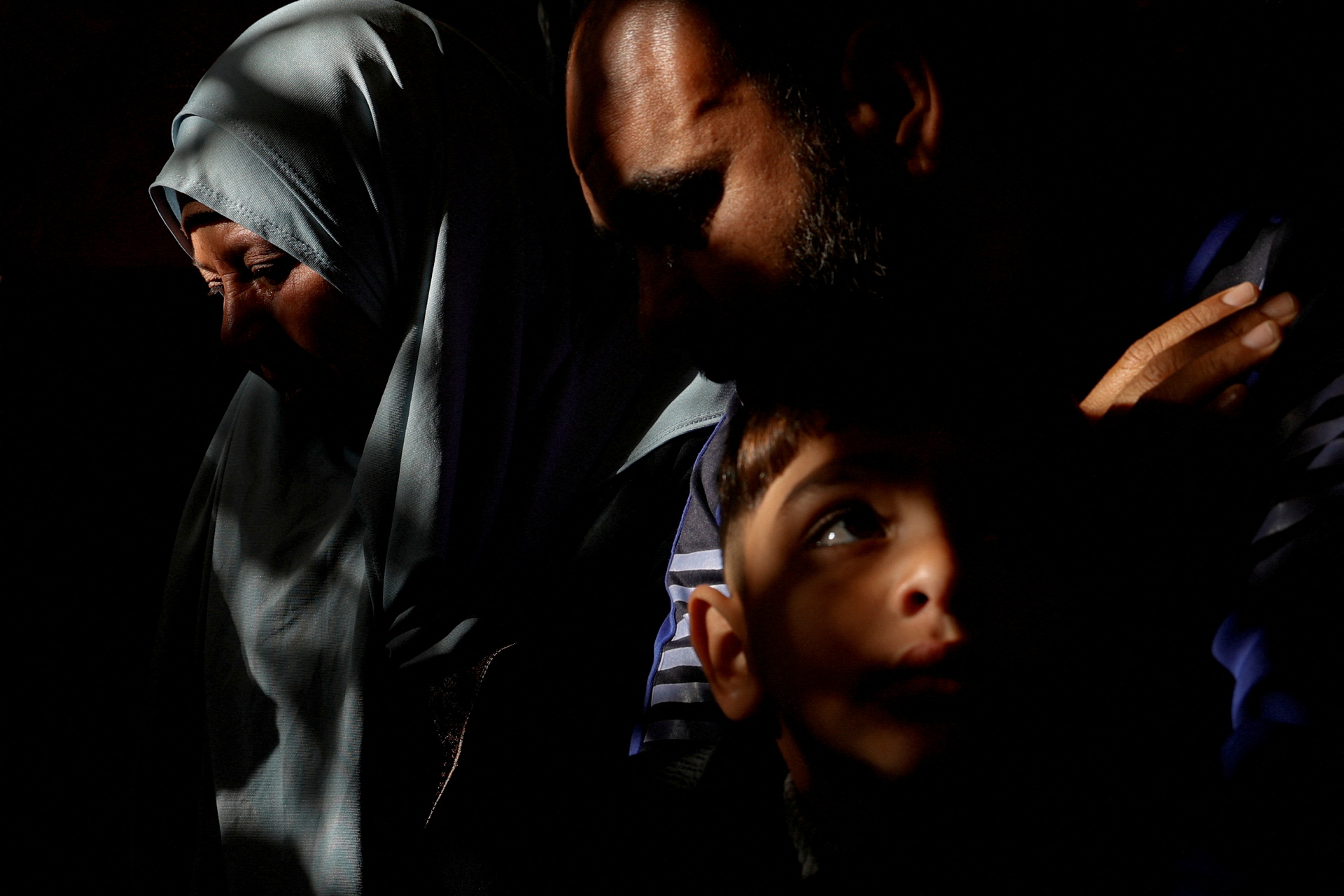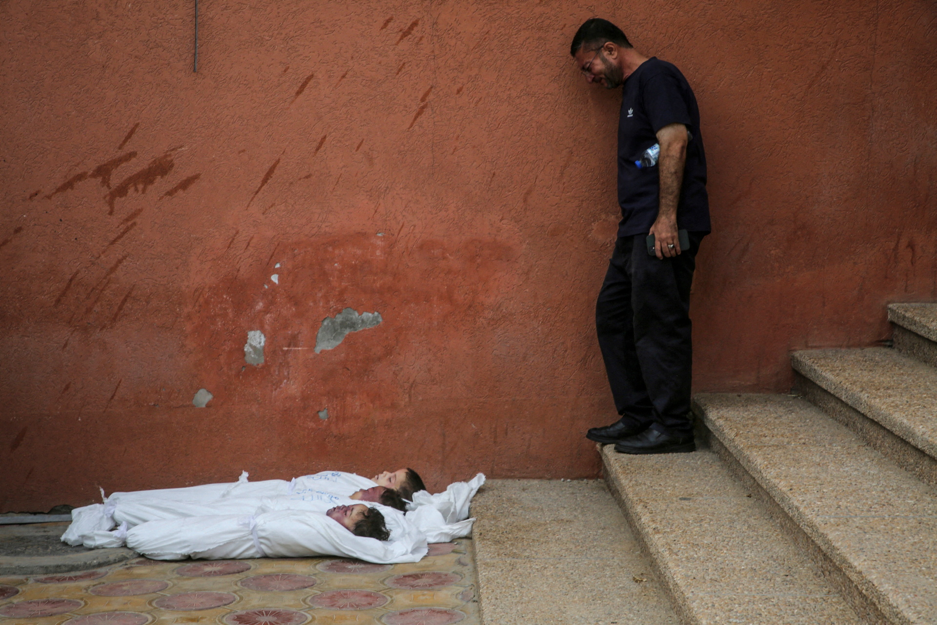 Газын зурвасын өмнөд хэсэгт орших Хан Юнис хотын Нассер эмнэлэгт Израилийн цохилтод амиа алдсан палестинчуудын оршуулгын үеэр гашуудаж буй хүмүүс. 2025 оны 4 сарын 13. REUTERS/Hatem Khaled