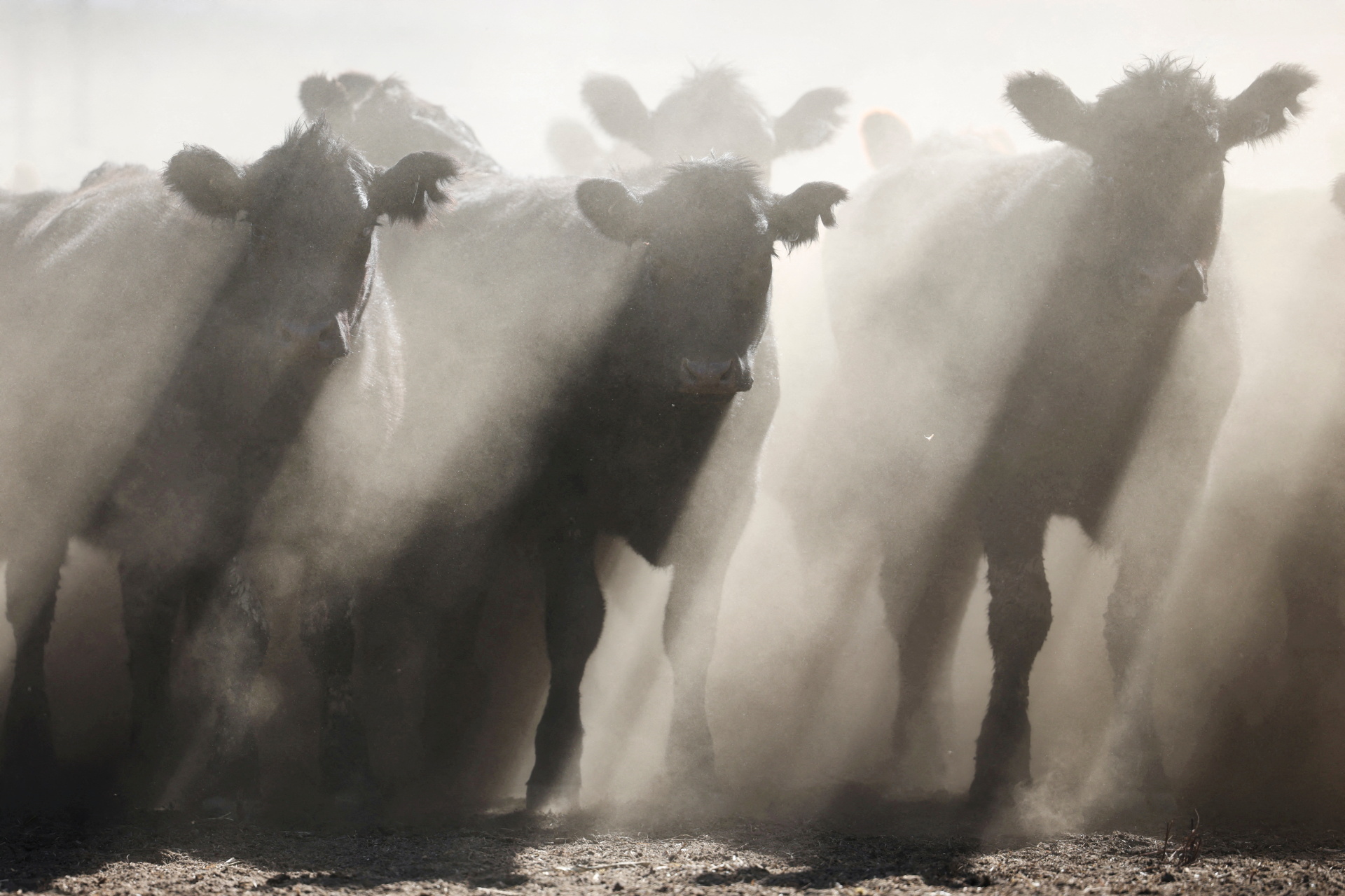 Австралийн Каркоар хотын Coombing Park фермийн хашаанд зогсож буй Ангус үүлдрийн үхэр сүрэг. 2025 оны 4 сарын 17. REUTERS/Hollie Adams