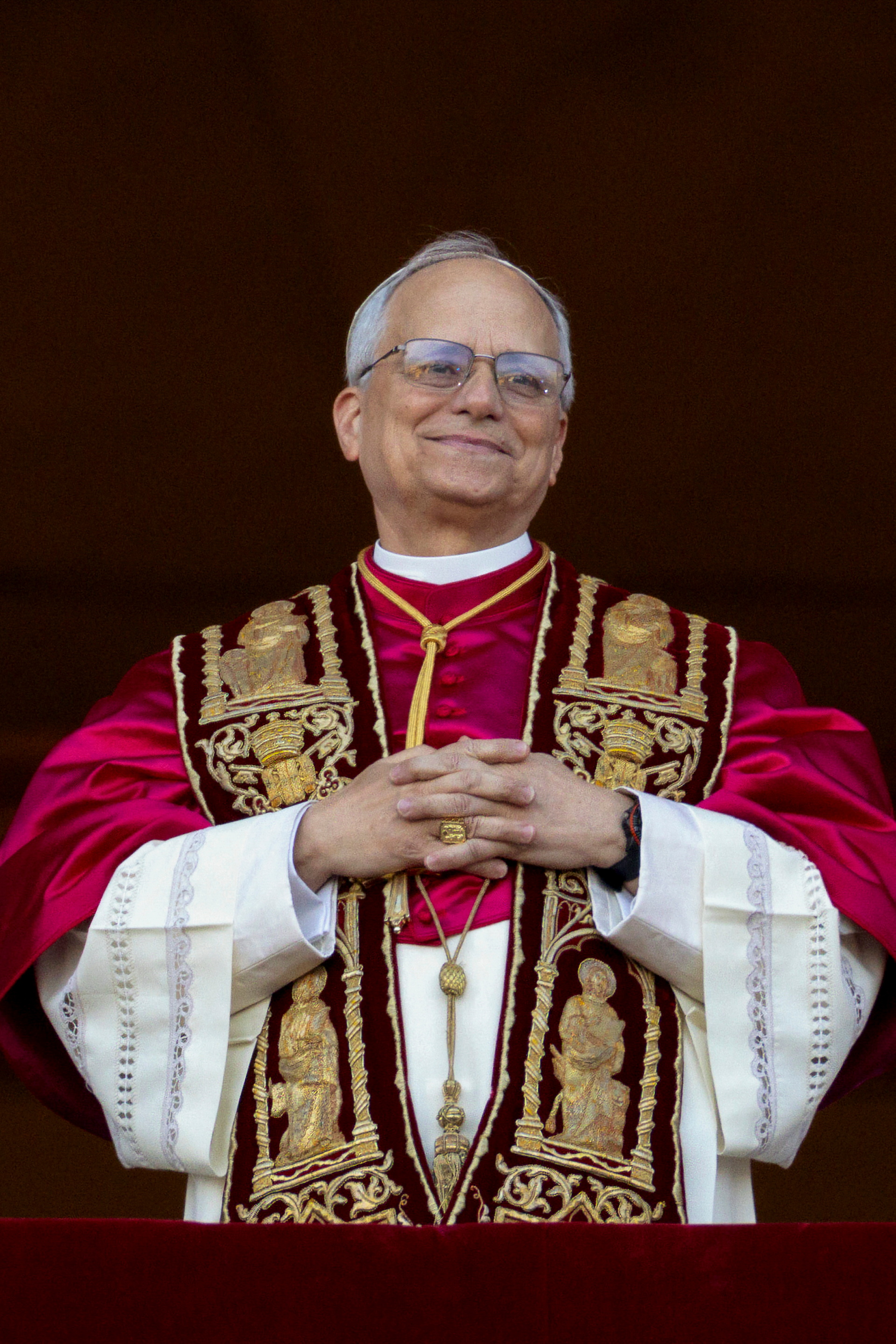 АНУ-ын кардинал Роберт Превост буюу шинээр сонгогдсон Пап Лео XIV Гэгээн Петрийн сүмийн тагтан дээр гарч ирж байна. 2025 оны 5 сарын 8. REUTERS/Guglielmo Mangiapane