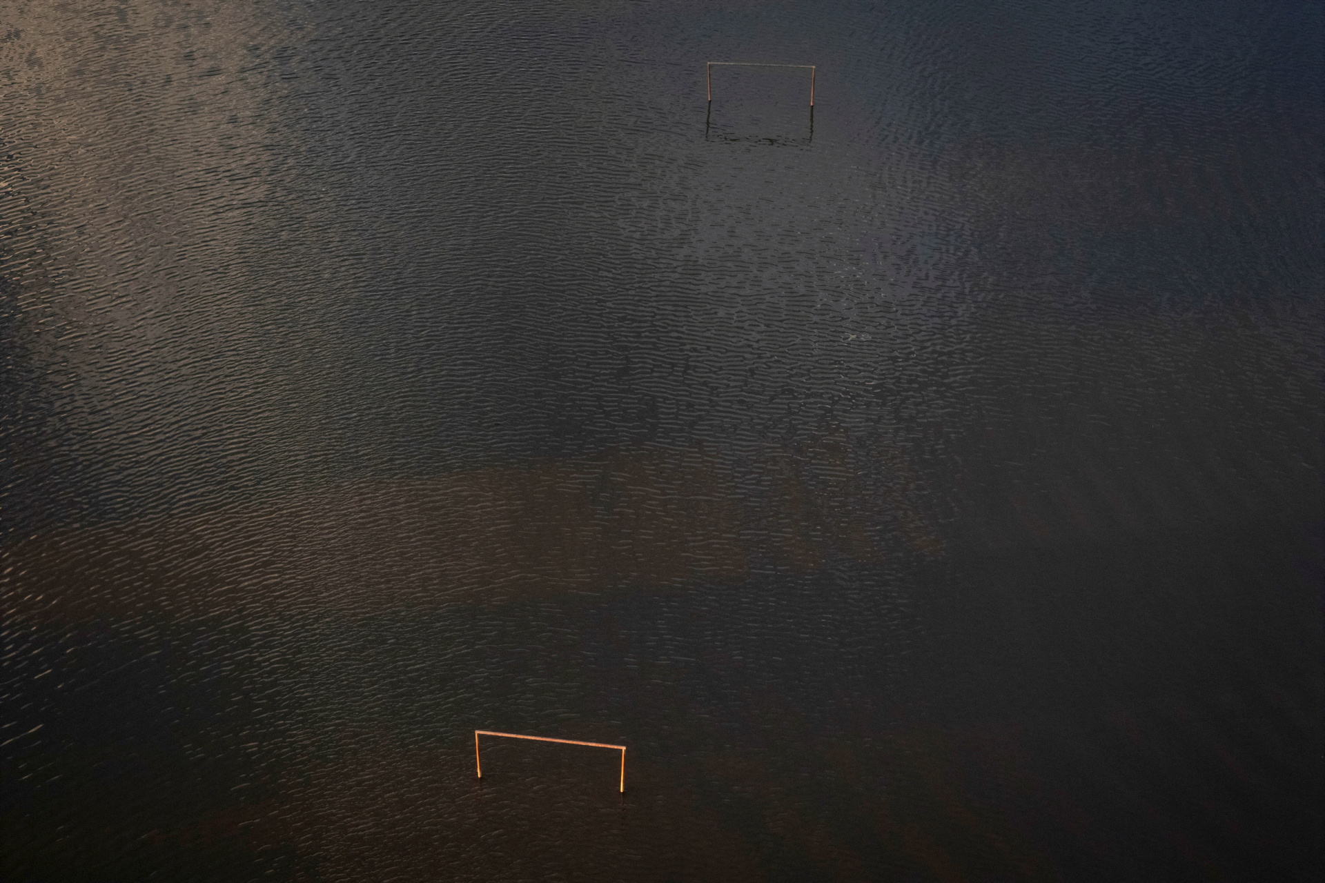 Их хэмжээний борооны улмаас үүссэн үерийн усанд автсан хөлбөмбөгийн талбайг Кампана хотын орчимд дроноор харуулжээ. Буэнос-Айрес муж, Аргентин. 2025 оны 5 сарын 18. REUTERS/Martin Cossarini