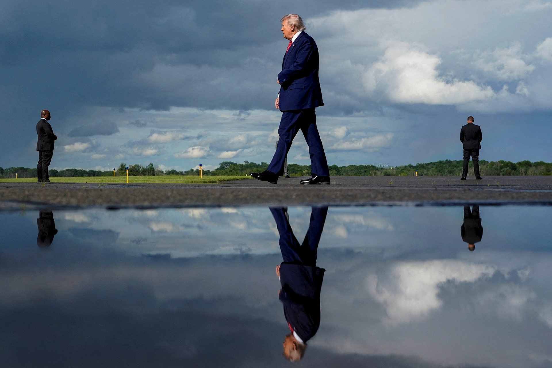 АНУ-ын Ерөнхийлөгч Дональд Трамп Пенсильвани мужаас буцаж ирснийхээ дараа Мэрилэнд муж дахь Joint Base Andrews баазад өөрийн зурагтай гар утсаа барьж буй нь. 2025 оны 5 сарын 30. REUTERS/Leah Millis