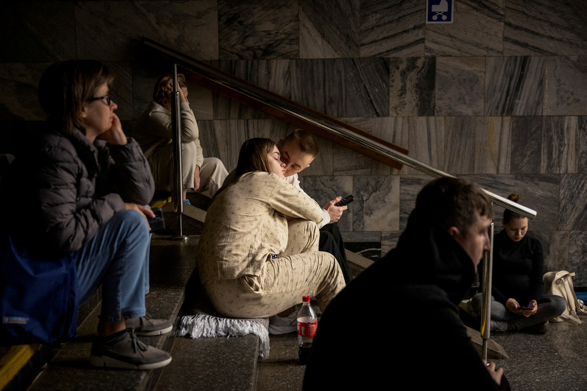 Нүүрний илэрхийлэл үгнээс илүүг өгүүлж чадна. Краматорск хотод Украины нэгэн захын худалдаачин дэлбэрэлтийн тортогт дарагдан зогсоно. Түүний царай уур хилэн, цочролоос гадна эсэргүүцэл, тэсвэрийг илтгэнэ. Ройтерсын гэрэл зурагчин Пап Леогийн царайг хурц гэрлийн тусгал дор гайхалтайгаар буулгажээ. Цээжээр татсан усанд туучиж яваа цагаачид уснаас дээш өргөн явах бяцхан охин руу харцгааж байлаа. Охины малгай дээр "Гүнж" гэсэн бичиг байх аж.