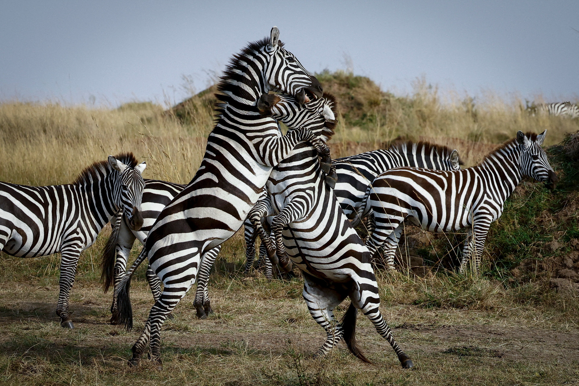 Кенийн Нарок тойрогт орших Маасай Мара дархан цаазат газрын тал нутагт бэлчиж байхдаа хоорондоо ноцолдож буй эрээн тахинууд, 2025 оны 8-р сарын 7. REUTERS/Thomas Mukoya