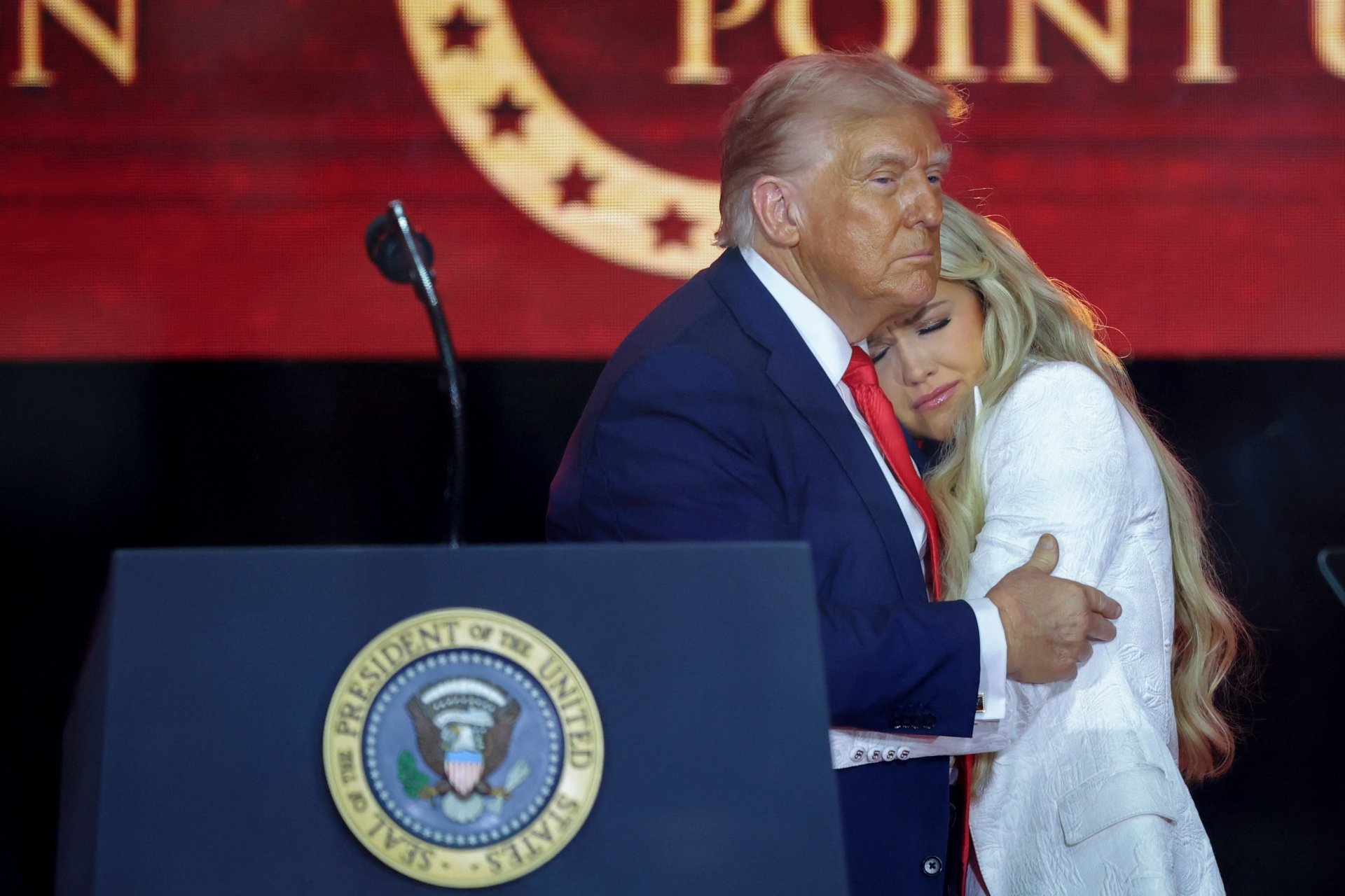 АНУ-ын Ерөнхийлөгч Дональд Трамп амь үрэгдсэн консерватив үзэлтэн Чарли Киркийн дурсгалыг хүндэтгэх ёслолын үеэр түүний эхнэр Эрика Киркийг тэвэрч буй нь, 2025 оны 9-р сарын 21. REUTERS/Carlos Barria