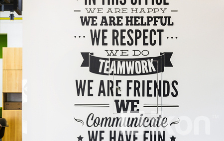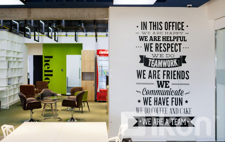 "Энэ оффист бид жаргалтай, тусархаг, нэгнээ хүндэлсэн хамт олон байх болно" гэсэн уриа үг үүдээр нь оронгуут угтах ажээ. Үргэлжлүүлээд харвал “Хайрцагнаас гарч сэтгэ”, “Багийн ажил мөрөөдлийн ажлыг бий болгодог” гэх мэт урам, зориг, ухаарал хайрлах үгсийг булан бүрт бичсэн байлаа. Мөн өрөө бүрийн өнгөлөг, шинэлэг дизайн өөрийн эрхгүй нүдэнд тусч сонирхлыг төрүүлнэ...
